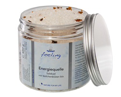 Energiequelle Salzbad Schöpfen Sie neue Kraft aus den Essenzen der Natur! Das wohltuende Salzbad Energiequelle wirkt stärkend, regenerierend und verjüngend auf die Hautstruktur. Ausgewählte ätherische Öle sowie hochwertiges Meersalz pflegen die Haut und verwöhnen die Sinne. Tipp: Auch als anregendes Peeling verwendbar!