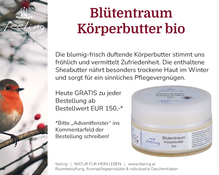 Die blumig-frisch duftende Körperbutter in Bio-Qualität wirkt besonders nährend und pflegend bei trockener Haut im Winter.