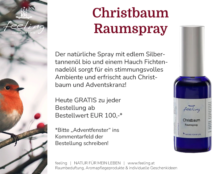 Der natürliche Spray mit edlem Silbertannenöl bio und einem Hauch Fichtennadelöl sorgt für ein stimmungsvolles Ambiente.