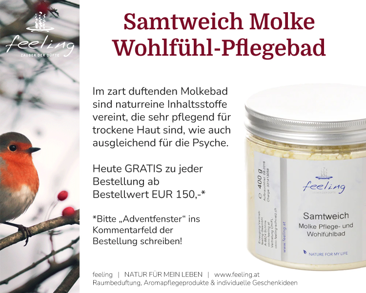 Das zart duftende Molkebad wirkt sehr hautpflegend bei trockener Haut im Winter und sorgt darüber hinaus für Entspannung und Wohlbefinden.