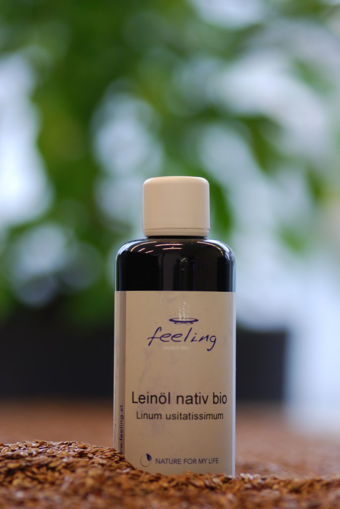 Lein zählt zu den ältesten und bedeutendsten Kulturpflanzen. Das Öl, welches aus den Leinsamen gepresst wird, gilt als DER Omega-3 Lieferant der Pflanzenwelt, mit einem Anteil von über 50% an der dreifach ungesättigten Alpha-Linolensäure. Diese wirkt äußerlich aufgetragen entzündungshemmend und regenerierend, innerlich eingenommen hat natives Leinsamenöl positive Auswirkungen auf Herz und Kreislauf, Gehirn und Denkvermögen sowie auf die psychische Befindlichkeit. Eine Leinsamenölkur wird empfohlen bei Ängsten, Allergien, Arterienverkalkung, depressiver Verstimmung, Bluthochdruck, Entzündungen, Hauterkrankungen, Nervosität und Stress-Symptomen.