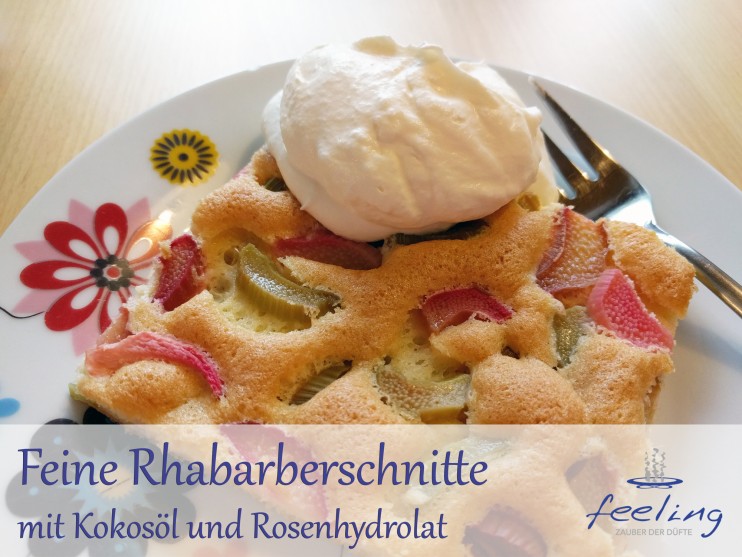 Feine Rhabarberschnitte mit Kokosöl und Rosenhydrolat